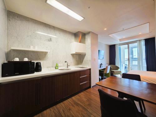 Experience an abundance of unparalleled facilities and features at WResidenceHotelHaeundae. Maintain seamless communication using the complimentary Wi-Fi at hotel.For visitors traveling by automobile, complimentary parking is available. During your stay at this fantastic hotel, the attentive front desk personnel can provide you with a range of amenities such as luggage storage and safety deposit boxes.During leisurely days and evenings, on-site amenities such as daily housekeeping enable you to fully enjoy your accommodation. For all your minor, last-minute requirements, the convenience stores can promptly cater to them, eliminating the need to venture out. Kindly note that smoking is prohibited in the hotel to ensure fresher air for all visitors.At WResidenceHotelHaeundae, every guestroom is provided with convenient amenities and fittings to ensure a comfortable stay. Enhance your experience at hotel with the knowledge that certain rooms are equipped with linen service, blackout curtains and air conditioning for your convenience.At WResidenceHotelHaeundae, each visit offers an array of intriguing room configurations, featuring accommodations with separate living room and balcony or terrace, ensuring a distinct experience every time. Certain rooms boast in-room amusement features such as television and cable TV, offering guests an enjoyable stay.In select rooms within the hotel, a refrigerator and bottled water is available to cater to your requirements when desired.It is worth noting that certain guest bathrooms feature a hair dryer, toiletries and towels for your convenience.