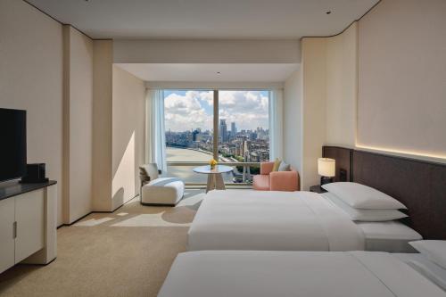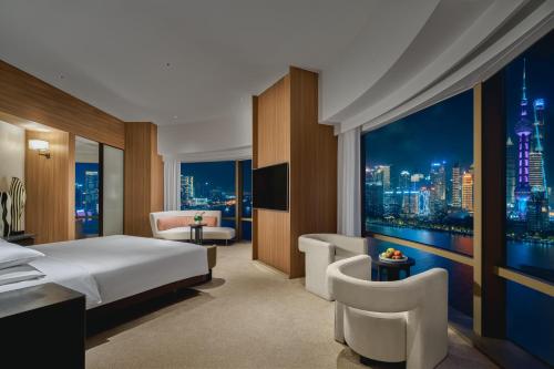 Hyatt On The Bund provides flawless service and all the necessary facilities for visitors. Stay connected with your associates, as complimentary Wi-Fi is available during your entire visit. The hotel offers taxi and car hire amenities for your ease in navigating around Shanghai. When arriving by car, you'll be grateful for the on-site complimentary parking at hotel. The hotel offers reception amenities including concierge service, express check-in or check-out, luggage storage and safety deposit boxes to ensure a comfortable stay for guests.Should you require assistance, the ticket service and tours can also aid in booking tickets and securing reservations at the finest shows and events in the vicinity. Whether it's an extended stay or simply needing fresh attire, dry cleaning service and laundry service provided by hotel ensures your cherished travel garments stay spotless and accessible.Your stay will be comfortable with the presence of room service and daily housekeeping as an in-room amenity for your relaxation and enjoyment. To ensure the well-being and convenience of all visitors, smoking is strictly prohibited throughout the entire hotel.Smoking is permitted solely in the specified smoking zones allocated by hotel.In order to ensure the utmost level of relaxation, the guestrooms feature an inviting design and are equipped with all basic necessities, creating a delightful stay experience. To ensure a pleasant stay, a selection of rooms at hotel come furnished with linen service, blackout curtains and air conditioning, all designed with your ease in mind.At Hyatt On The Bund, various room configurations are available, featuring separate living room and balcony or terrace in some rooms.In select rooms, visitors can enjoy a touch of amusement with the availability of daily newspaper, television, in-room video streaming and cable TV for their entertainment needs. Within specific rooms, a refrigerator, bottled water, a coffee or tea maker, instant coffee, instant tea and mini bar is conveniently available for your use.Understanding the significance of bathroom facilities in enhancing visitor contentment, hotel offers a hair dryer, toiletries and bathrobes within a few chosen chambers.To experience refined leisure, do not miss the opportunity to drop by the executive lounge. Start your day stress-free at Hyatt On The Bund as breakfast is made available for you on the premises. Various excellent meal offerings at hotel ensure that enticing and easily accessible options are constantly available. Upon arrival, make sure to explore bar and nightclub to experience enjoyable evening entertainment within the premises.Throughout the day and night, guests can enjoy light refreshments with the hotel offering vending machines.Throughout the day, engage in the entertaining activities available at Hyatt On The Bund. Guests who enjoy maintaining their fitness regimen while on holiday can visit the fitness center provided by hotel.