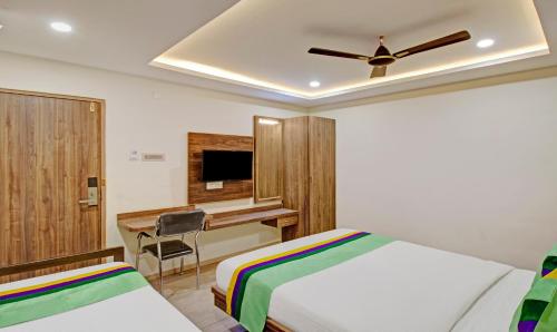 Capital O SRI MAHAVEER USHA VASAVI & CO offers top-notch services and amenities, ensuring guests experience utmost comfort. Maintain seamless communication using the complimentary Wi-Fi at hotel.For visitors traveling by automobile, complimentary parking is available.Reception assistance is offered at the hotel featuring luggage storage.During chilly days and evenings, the hotel provides an in-house fireplace to ensure your warmth. For extended visits or whenever required, the laundry service ensures your preferred travel garments remain fresh and accessible. Craving relaxation? Make the most of your stay at the Capital O SRI MAHAVEER USHA VASAVI & CO with convenient amenities like room service and daily housekeeping at your disposal. Kindly note that smoking is prohibited in the hotel to ensure fresher air for all visitors. At Capital O SRI MAHAVEER USHA VASAVI & CO, every guestroom is provided with convenient amenities and fittings to ensure a comfortable stay.Enhance your experience at hotel with the knowledge that certain rooms are equipped with linen service, blackout curtains and air conditioning for your convenience. Certain rooms boast in-room amusement features such as television and cable TV, offering guests an enjoyable stay. In select rooms at the hotel, bottled water is available for those moments when it seems necessary. In the hotel, certain guest bathrooms come equipped with essential bathroom amenities, such as toiletries and bathrobes, ensuring a comfortable stay for guests. Begin your day carefree at Capital O SRI MAHAVEER USHA VASAVI & CO, as complimentary breakfast is offered for your convenience. At the hotel, an assortment of easily accessible and delicious meal choices are available to satisfy your appetite whenever it strikes.At the hotel, discerning guests can also enjoy on-site culinary facilities like shared kitchen tailored to their preferences.