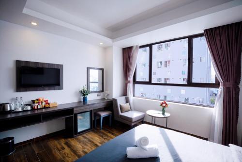 峴港拉卡薩飯店提供優質的服務和設施,以確保客人體驗極致的舒適。使用住宿的免費Wi-Fi,以隨時對外保持聯繫。在入住日期前,您可以安排機場接送服務,以確保您在抵達和離開時都非常順利且省時。 因為住宿提供交通服務,探索芽莊更加便利。 旅客可直接使用住宿內的免費停車位。禮賓服務等接待服務可滿足您的需求。得益於住宿的票務服務,您可輕鬆預訂搶手門票和熱門餐廳。無論您是長期住宿還是需要換洗乾淨的衣服,住宿提供的洗衣服務都能確保您喜愛的旅行衣物一塵不染且方便取用。客房服務等設施為您提供多樣選擇,讓您的住宿體驗更加美好。 臨時需要什麼嗎?便利商店可滿足您的需求,且不會帶來任何不便。在有限的指定區域內,旅客可以抽菸。峴港拉卡薩飯店的每間客房均經過精心設計和裝飾,為旅客提供舒適且溫馨的氛圍。為了讓您享受更愉快的住宿體驗,住宿的部分客房配有空調或床單清潔服務。 峴港拉卡薩飯店的部分房型展示了獨特的設計元素,例如獨立客廳、陽台或露台。在部分房型中,旅客可享受房內影音串流服務、每日報紙或電視等樂趣,以滿足他們的娛樂需求。特定房型提供了沖泡咖啡或茶的所需用品,方便您使用。 值得一提的是,部分客房浴室配有浴袍、毛巾或吹風機,方便您使用。 在峴港拉卡薩飯店無憂無慮地開始新的一天吧!早餐已經為您準備好了。 住宿期間,您可以在住宿享用多樣且令人愉快的美食,以提升您的體驗。 在住宿的娛樂設施中度過美好的夜晚,就像與旅伴外出探險一樣享受。您有高超的廚藝嗎?您可以在住宿內的料理設施親自下廚。 峴港拉卡薩飯店提供各種優質的休閒設施供客人使用。 住宿提供各種有趣的活動,以確保您在旅途中不會感到無聊;此外,也千萬別錯過鄰近的海灘,從住宿即可輕鬆抵達。在峴港拉卡薩飯店,各項便利設施保證讓您的整趟旅程精彩充實。跳入泳池恢復活力,創造難忘的假期。