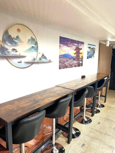 We have a drink server for drinks, so please pour them into the papercups provided and drink. The types are coffee, black tea, green tea, andapple juice.