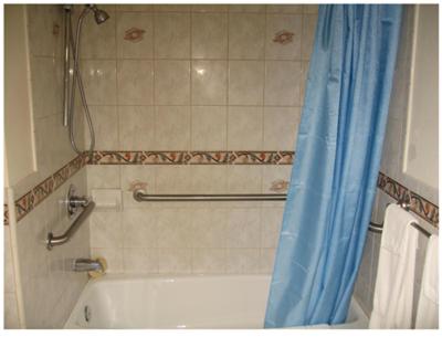 Accessibility Amenities Adapted bath, Entire unit located on ground floor, Entire unit wheelchair accessible, Lower sink, Raised toilet, Shower chair, Transfer chair, Toilet with grab bars, Assistive listening devices available, Doorbell and Phone notification, Visual fire alarm, Lever door handle, Phone accessibility kit, wheelchair/width doorways, vibrating pillow alarm, height-adjusted amenities, room is accessed by exterior corridor, path of travel