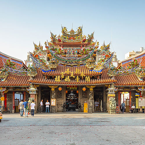 新港奉天宮建築的形制是仿照皇宮,從廟宇的山川殿大門看起,兩扇大門上面繪的不是一般門神,而是生龍活虎的金龍,廟號「奉天」為皇帝賜予。新年走春,來到奉天宮,體驗節慶氣氛。