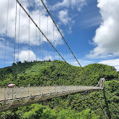 海拔約1000公尺,海拔最高的景觀吊橋能讓旅客俯瞰嘉義風光,還能欣賞雲海風景,知名的梅山36彎美景盡收眼底。欣賞完漫步雲端的美景後,太平雲梯附近的太平老街更是走春的好去處,滿溢喜慶氣氛。