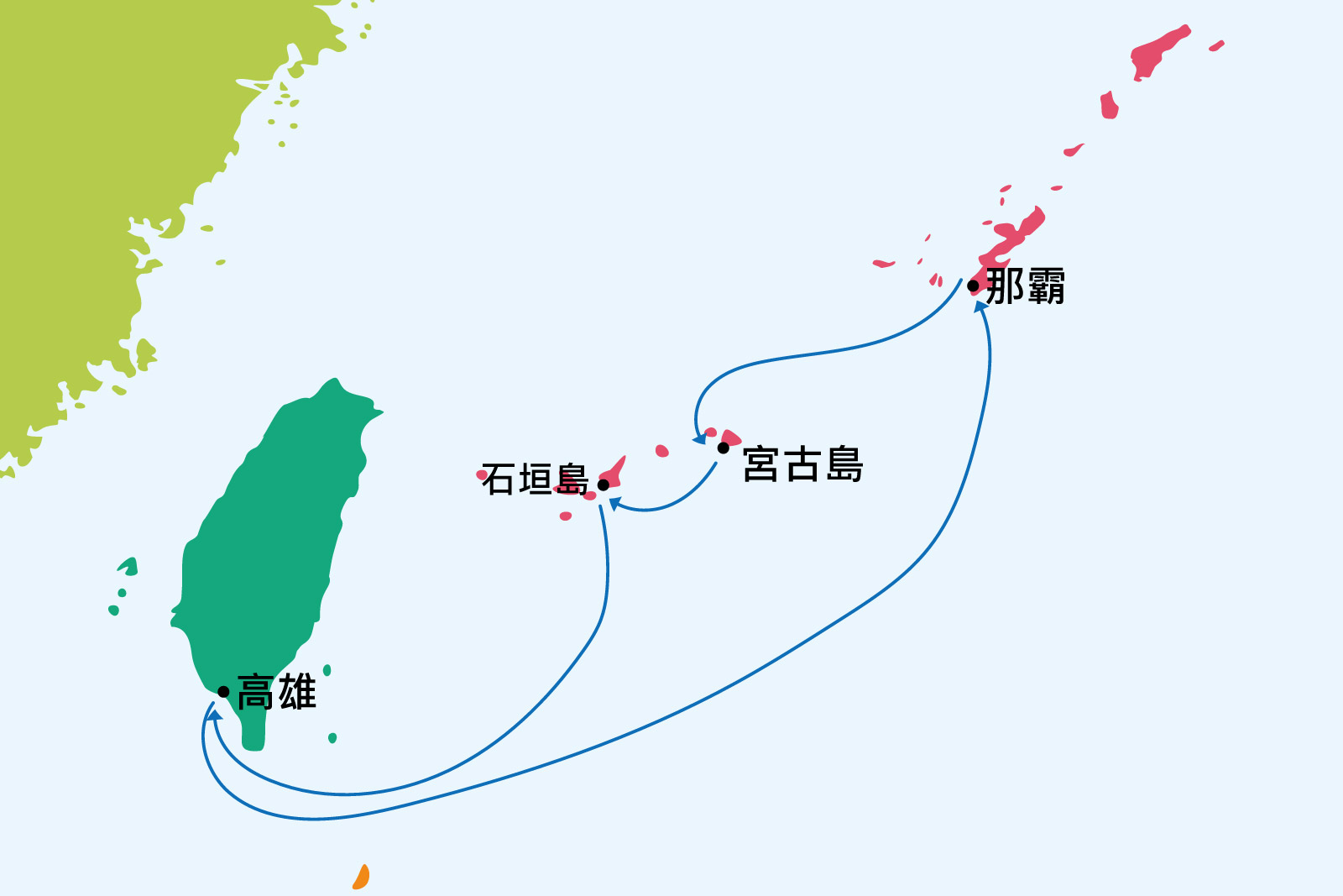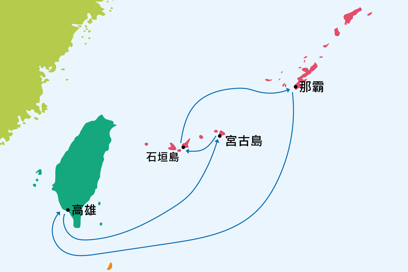 | 第三天 | 石垣島 | 14:00 | 23:00 |